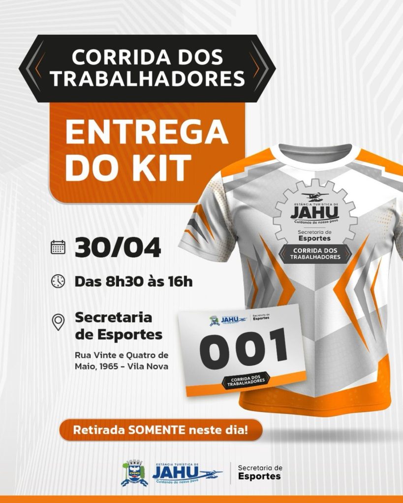 A retirada dos kits de inscrição ocorrerá no próximo dia 30 de abril, das 8h30 às 16h, na sede da Secretaria de Esportes, que fica à rua Vinte e Quatro de Maio, 1965 – Vila Nova (Balneário “Aristides Coló”).